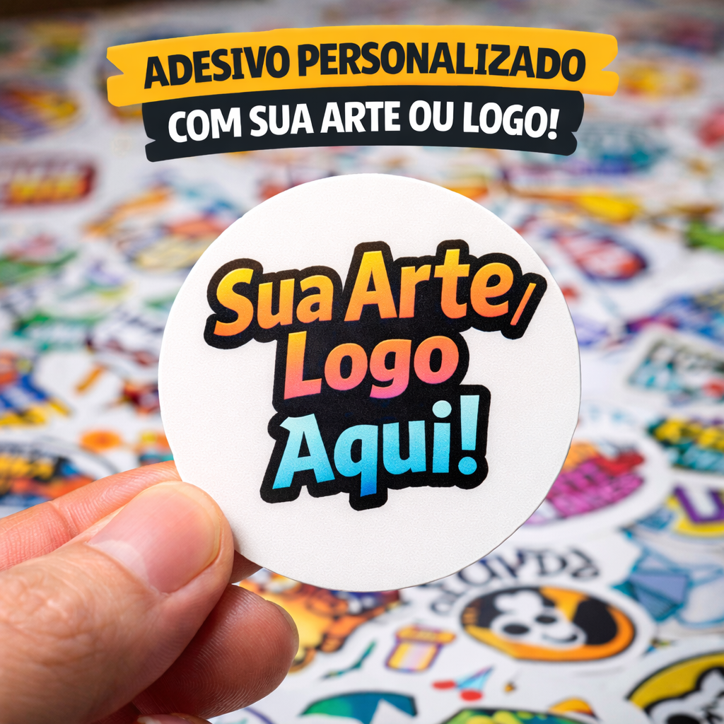 Adesivo em Vinil Branco Redondo - 5cm com sua arte ou logo