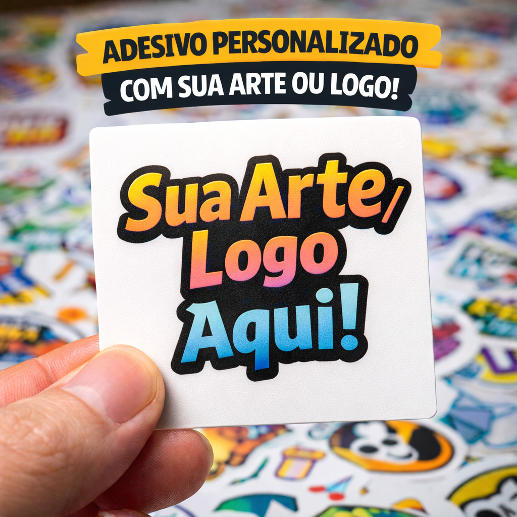 Adesivo em Vinil Branco Quadrado - 5cm com sua arte ou logo