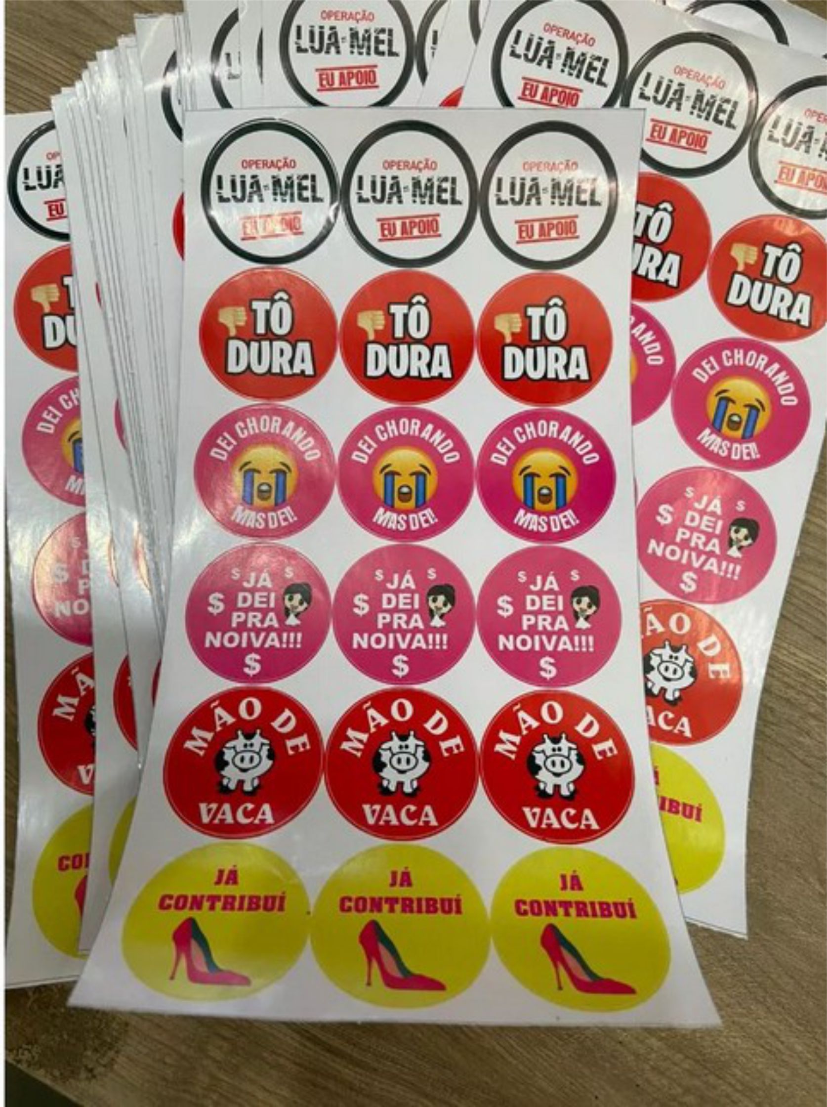 Adicione um toque especial e divertido ao seu casamento com a Cartela de Adesivos “Hora do Sapatinho” da Chega + Stickers! Feitos em vinil autoadesivo de alta qualidade, esses adesivos são perfeitos para você usar na brincadeira tradicional da “Hora do Sapatinho”, decorar lembrancinhas, detalhes da festa ou presentear seus convidados com um toque criativo e personalizado.